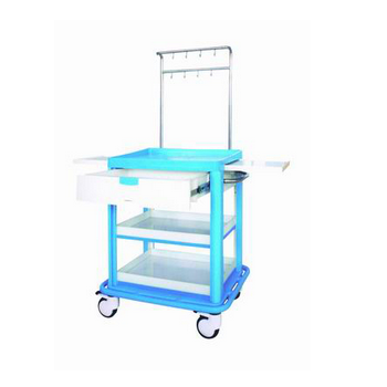 ABS治療車 FG-E-04產品概述:尺寸:783*504*940MM1.臺面采用ABS模具成型,車體輕便,容易清潔;上臺面配透明軟玻璃。2.立柱采用3MM厚度鋁合金型材,強度高,耐磨抗腐蝕,外形美觀...